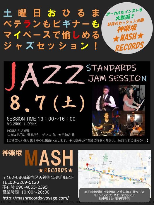 8 7土曜 ノンアル開催 神楽坂mash Records おひるまジャズセッション13 00スタート マッシュレコーズ Tokyo 7 August 21